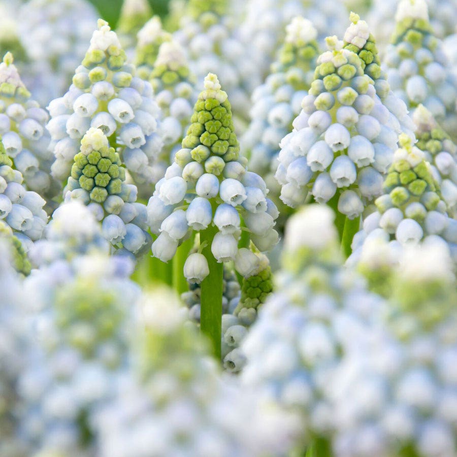 Absolutely sparkling with the ocean's infinite spectrum of shimmering blue and white color 'Ocean Magic' Grape Hyacinth yields cone shaped blooms that gradually blend from a deep cobalt blue at its base, to indigo, to azure, to sky, eventually cresting pure white at the top just like a wave crashing onto the shore. Not only are they incredibly unique and beautiful but they also boast a sweet fragrance that will have all who pass by stop and pause. These incredible blooms are also pest and deer resistant so no need to worry about pesky pests bothering these incredible blue blooms. 'Ocean Magic' Grape Hyacinth thrive in full sun or deciduous shade, tolerate most soil types, and seem to last forever. They are ideal companions for taller bulbs or flowering shrubs, or plant them by themselves and watch them light up the landscape. Anywhere you put them 'Ocean Magic' Grape Hyacinth will bring the glory of the sea to your garden.