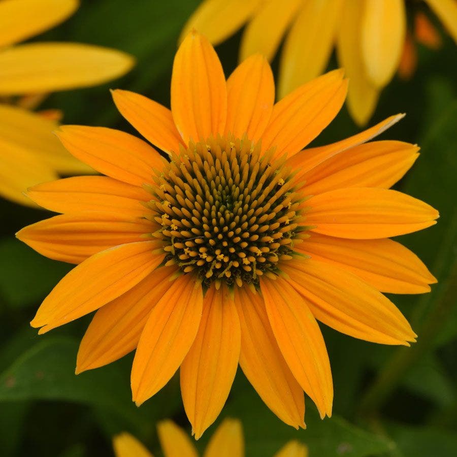 Joining the Artisan™ Collection in 2023, the first F1 hybrid echinacea series on the market, Yellow Ombre is an herbaceous perennial that blooms heavily and uniformly from late spring/early summer to frost. The plant sets large, 3- to 4-inch flowers in graduated colors of golden yellow. The flowers maintain their vivid, saturated color all season. They sustain butterflies and bees, and the dried end-of-season seed heads that follow provide food for songbirds and add garden interest as well. The flowers are long lasting and make excellent cuts for floral displays.