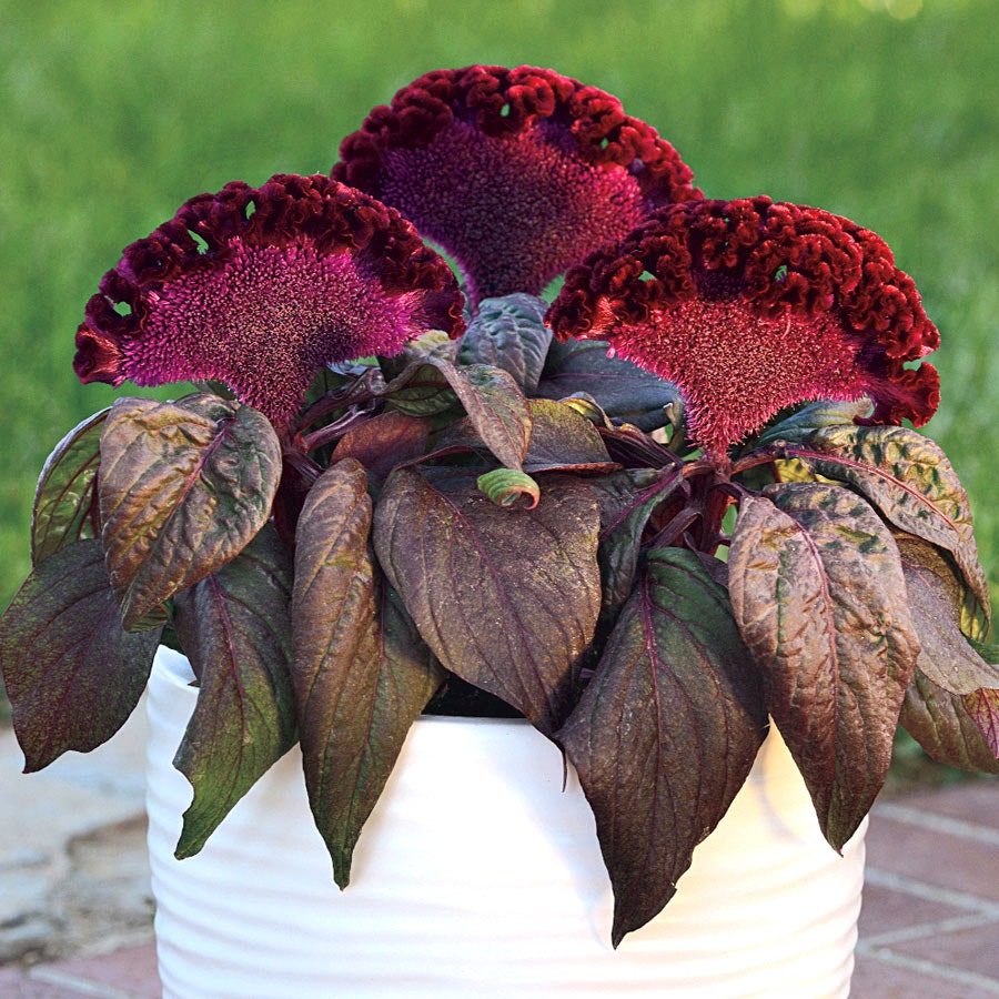Every well-dressed garden needs one showstopper, and Dracula is hoping to be chosen for that role in your landscape. This incredible crested celosia sets a single, enormous bloom 6 to 7 inches long, facing upright with a rippled crest and rich color that deepens from blood red to midnight violet in the sunlight. If there's a more dramatic plant anywhere, we'd like to see it.