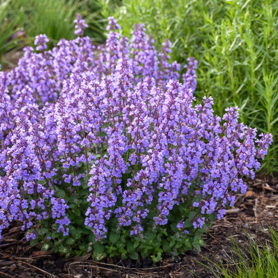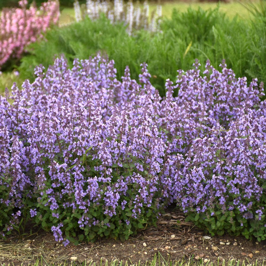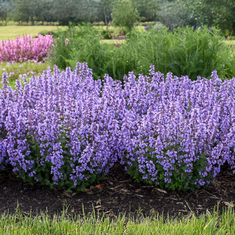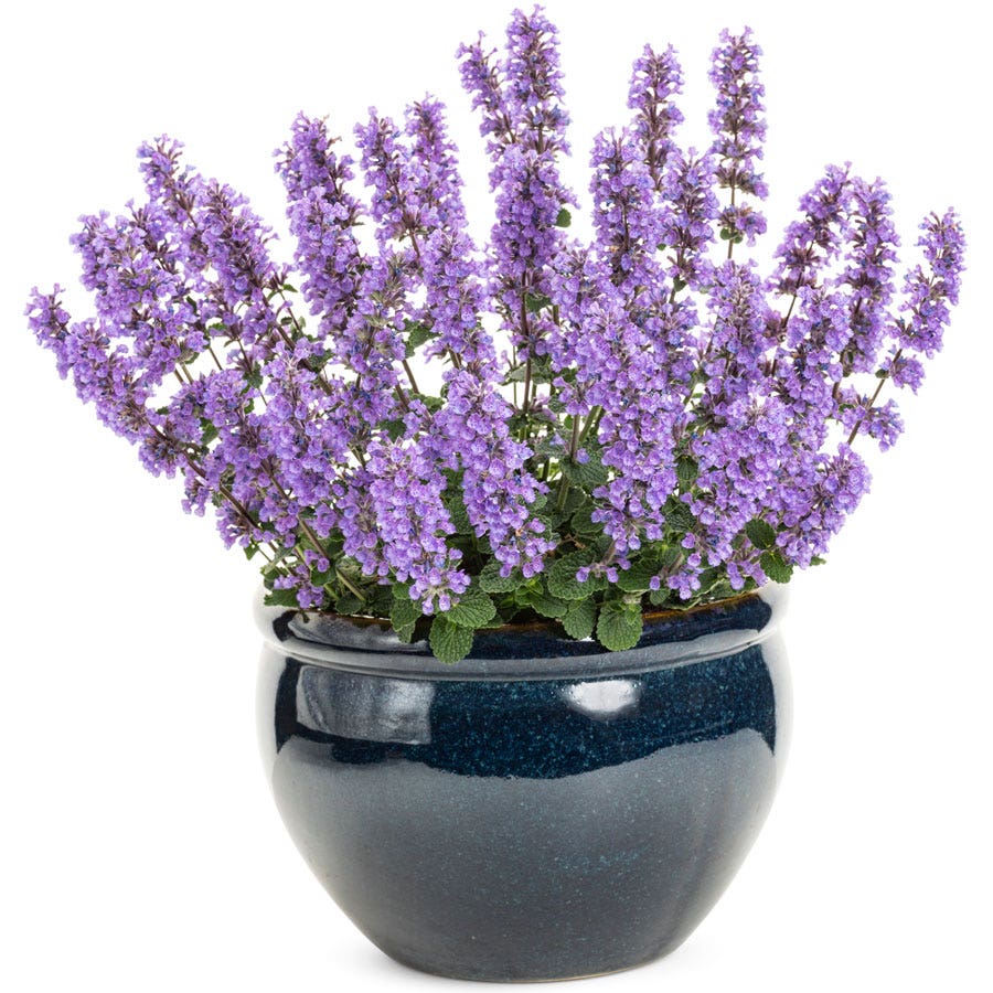 Glowing like a blue flame in the summer sun, this perennial is truly the cat's meow! Great news for arid gardens, Nepeta (catmint) was built to endure summer's worst tendencies. No matter what the season throws at 'Cat's Pajamas' Catmintextreme heat or droughtthis sun-loving classic stays colorfast and lovely all summer long. This variety looks gorgeous planted in mass, tucked in borders, and bursting out of containers.