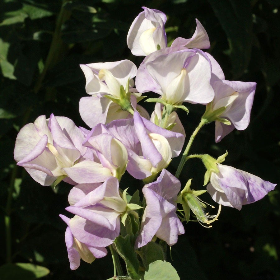An heirloom variety and one of the most fragrant sweet peas available, 'High Scent' Sweet Pea is an award-winning vining plant that grows to a mature height of 48 inches and blooms throughout summer in large, bicolored flowers having white petals with painterly purple edges. The fragrant blooms, borne in clusters on winged stems with paired leaflets, make excellent cut flowers for summer bouquetsand the more you cut, the more it blooms.
