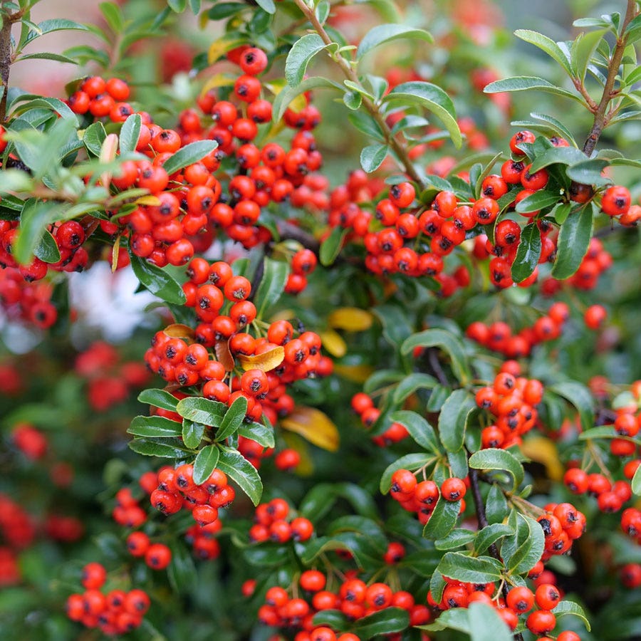 A Proven Winners® ColorChoice® Flowering Shrubs variety, Pyracomeles Berry Box™ is an evergreen shrub offering year-round interest. Showy from spring through fall, this charming little pyracantha-esque shrub is covered in white button-like blooms spring through fall, followed by abundant pea-sized berries that turn from orange to red, providing a tasty treat for birds.