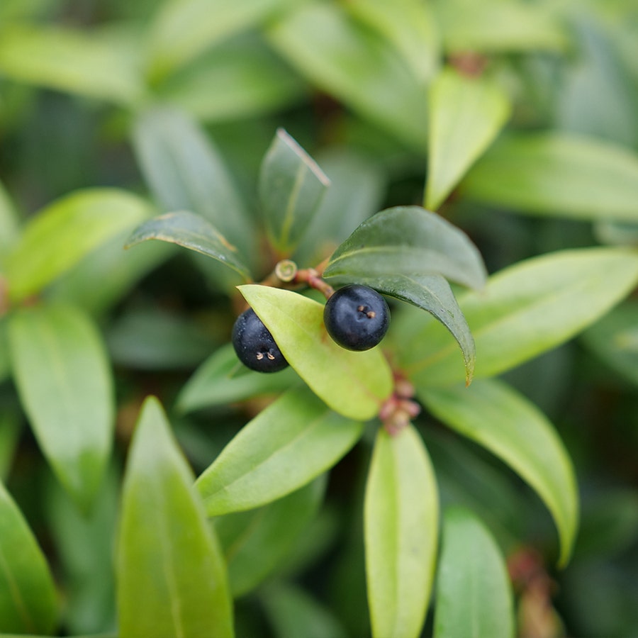 A Sarcococca hookeriana, commonly called sweet box, Sweet & Lo has a compact, mounded habit of glossy, dark green foliage. Extra bushy and full bodied, this shrubby ground cover is highly versatile and suckers lightly, improving its ground covering habit. It makes a great specimen, especially in a container, but is shown to best effect when massed or grouped in beds and borders.