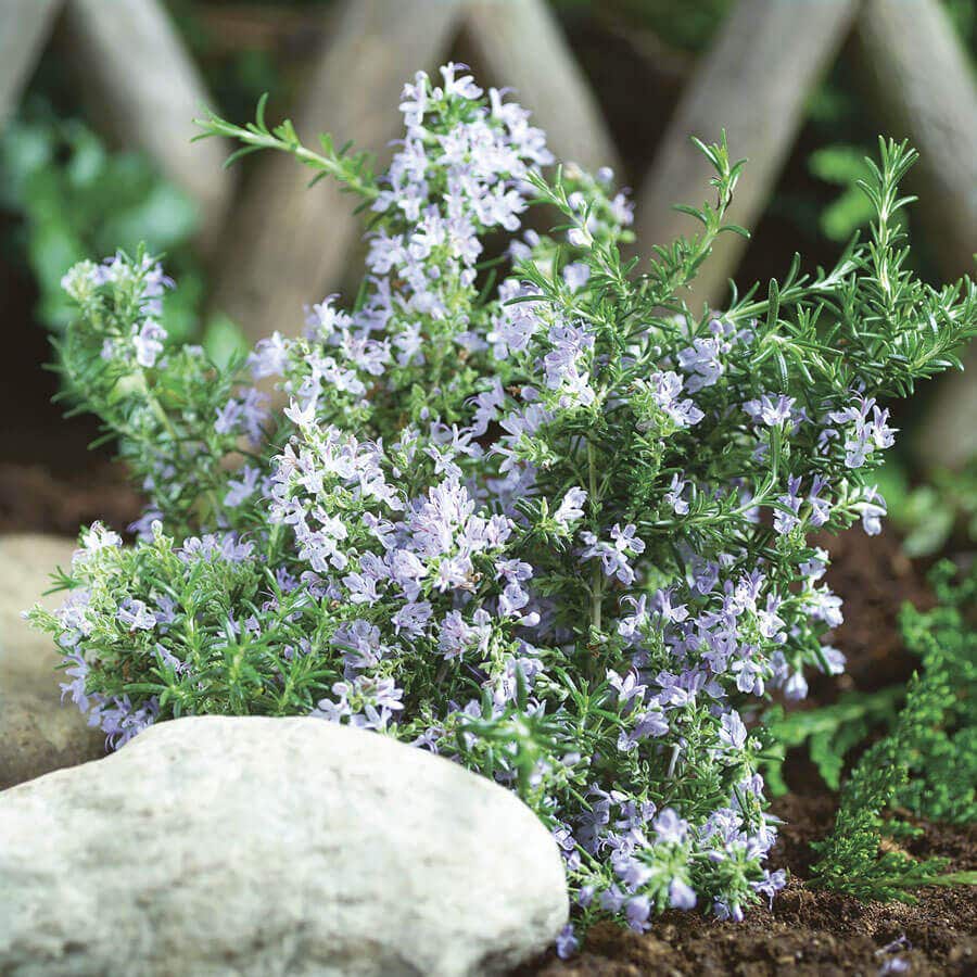 Space plants 12 to 18 inches apart in the bed or border for dense coverage, and if you are growing rosemary where it is perennial, shear it back in late winter to encourage even more branching and a symmetrical, pleasing shape. It needs excellent soil drainage and regular watering during spring growth the first year, and afterwards is quite heat- and drought tolerant. Such a delight.