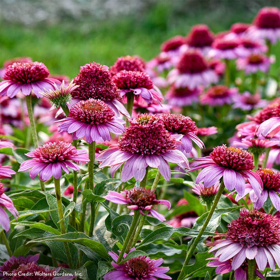 Vibrant color and dependable performance season after seasonEchinacea Double Coded™ 'Everything's Rosy' earns its place in the spotlight. A standout from Proven Winners®, this compact coneflower dazzles with fully double blooms in saturated raspberry rose, packed with layered petals that hold their color beautifully from early summer into fall. With repeat flowering and strong, upright stems, this variety stands tall through heat, drought, and long bloom cycles. Deer resistant and pollinator friendly, it draws butterflies by the dozen and performs reliably in both tough and tidy landscapes. Its impressive vase life also makes it an excellent choice for fresh-cut arrangements.
