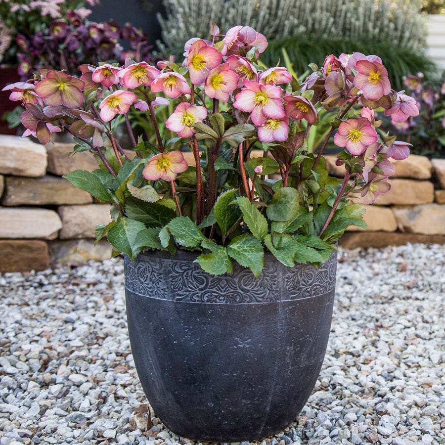 Low-maintenance and adaptable, Cheryl's Shine thrives in a range of soils, including chalk, clay, and loam, as long as they are well-drained. For optimal growth, plant in dappled shade with moist, nutrient-rich soil and a neutral to slightly alkaline pH. Once established, this hellebore resists deer, rabbits, and drought, though it should be shielded from overly wet conditions. In milder summer climates, it can even enjoy full sun, provided its roots stay cool, making it a resilient choice for both new and seasoned gardeners.