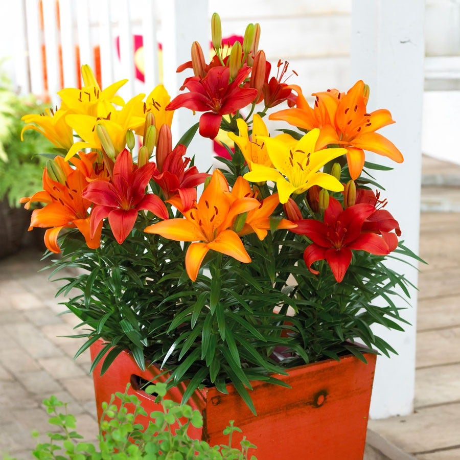 Plant bulbs in early spring, spacing them 3 to 4 inches apart and burying them 3 to 4 inches deep. With minimal care, Sunset Patio Blend lilies will bring colorful charm to your garden or patio year after year.