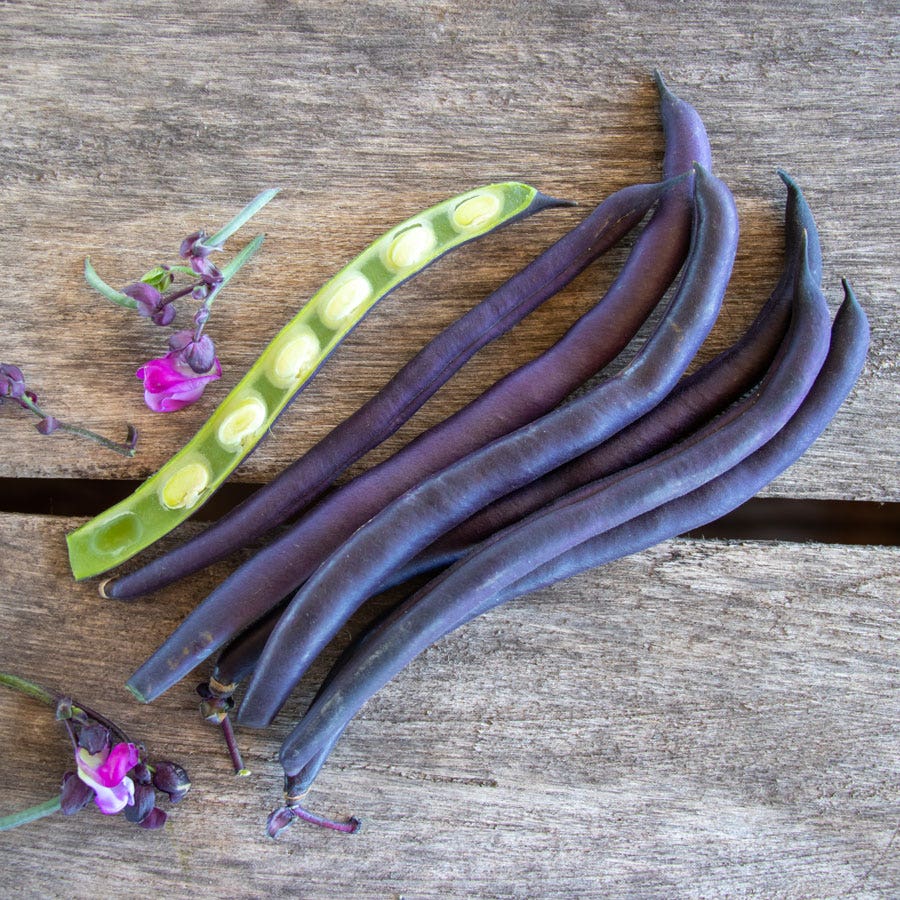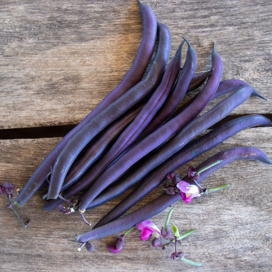 Garden Bean Purple Queen Improved is an improvement over the original Purple Queen. This unique snap bean performs well even in cool weather conditions early in the growing season. The plant sets clusters of pea-shaped buds that blossom into small purple flowers, followed by plump, very dark purple podsabout 5 to 5½ inches longwith a green interior, red stems, tender white seeds, and fabulous flavor. The pods hold their striking purple color well.