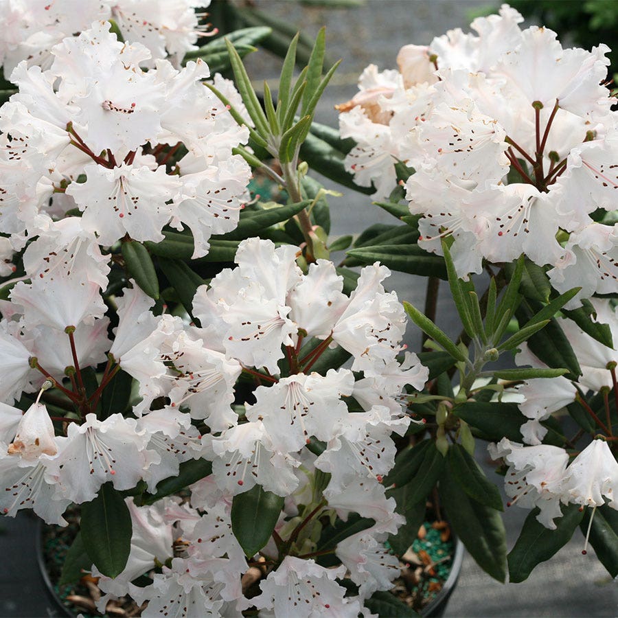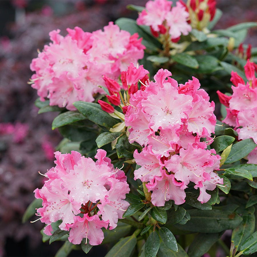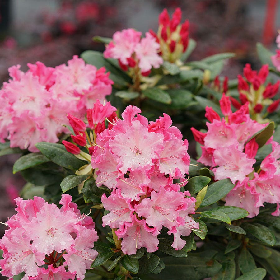 A Proven Winners® ColorChoice® Flowering Shrubs variety. Colorful and durable shrubs are what we are all about, and we're excited to add Rhododendron Dandy Man Color Wheel® to our collection of incredible options. Seeing its beautiful blooms is bound to make you a fan as wellthey start out as bold red buds and open to reveal big, ruffled blooms with deep hot pink undersides and soft pink insides. The blooms age to a pure, clean white before falling off. As the plant goes through its late spring bloom period, you'll see all three at once, making for a super colorful display.