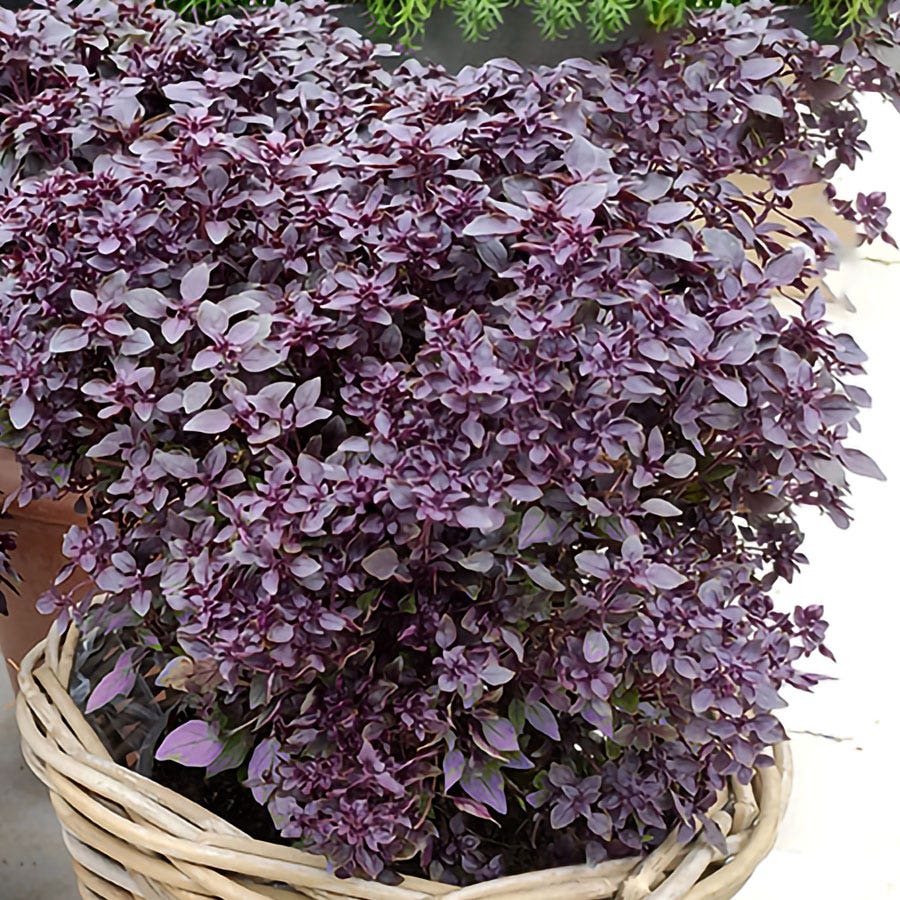 Purple Ball basil seeds can be started indoors 4 to 6 weeks before transplanting into warm soil when temperatures are consistently above 65°F.
