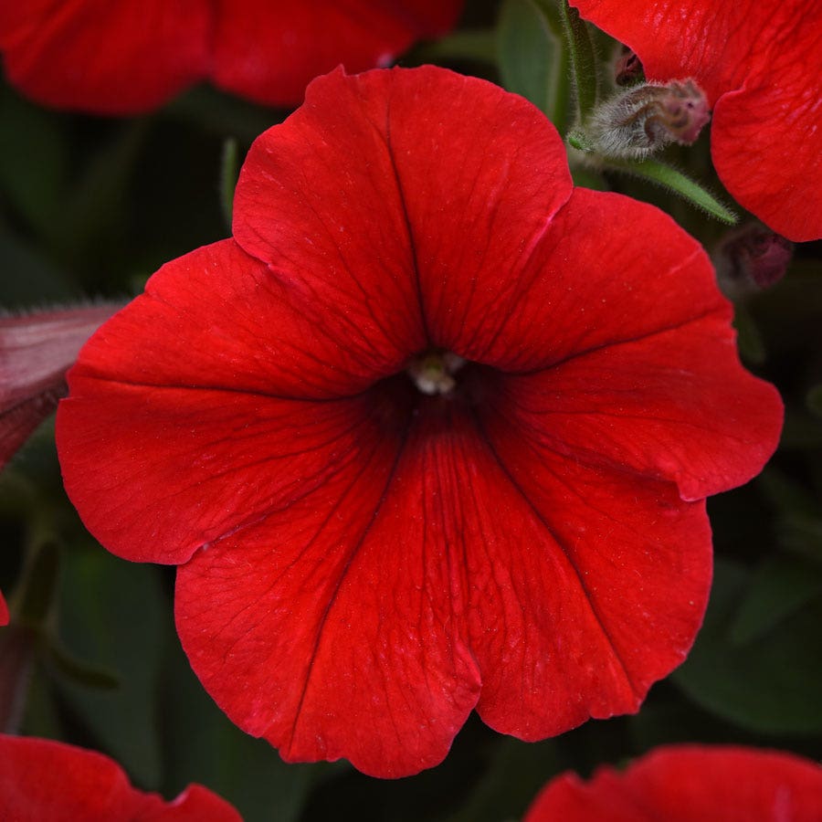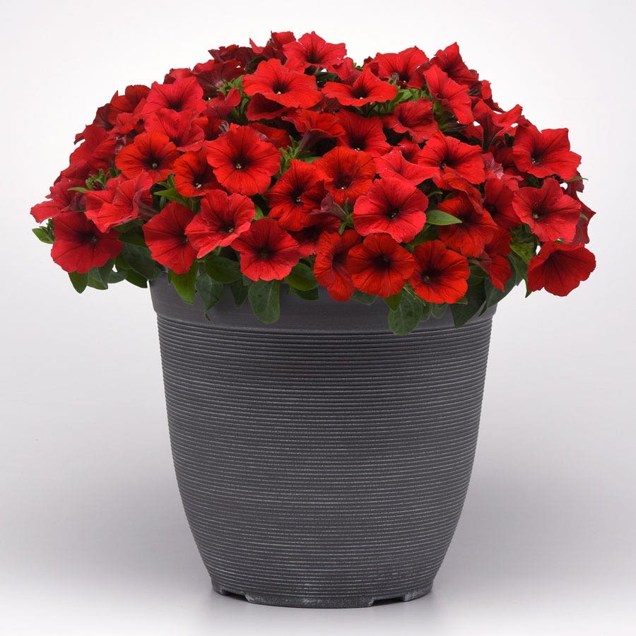 Full and lush, E3 Easy Wave® Red Petunia has an efficient, tight, dome shape; a controlled, spreading habit; and manageable vigor. The plant gracefully cascades from containers, window boxes, and hanging baskets but also makes great edging or ground cover in beds and borders. Planted alongside perennials and vegetables, petunias repel asparagus beetles, leafhoppers, a range of aphids, tomato worms, and many other pests.