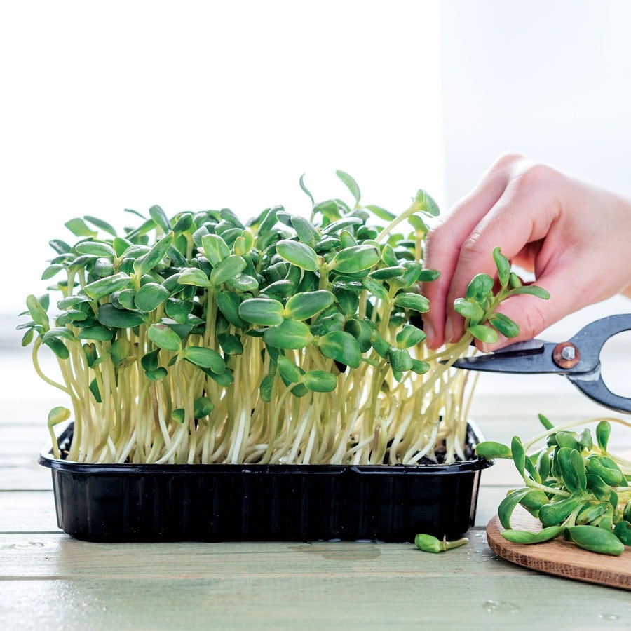 Sunflower Black Oil microgreens are so quick and super easy to grow, they're perfect for beginners. They make a great first growing experience for kids, who will also enjoy their mild flavor. Microgreens can be grown in the garden seasonally or indoors year-round, either on a bright, sunny windowsill; under an LED grow light; or in a warm greenhouse. For a continuous crop, soak seeds for 3 to 4 hours, sow seeds every 10 days, using a soil-based media, such as potting soil, or coconut coir. Harvest microgreens at the seedling stage, at about 3 to 4 inches tall, after true leaves have developed.