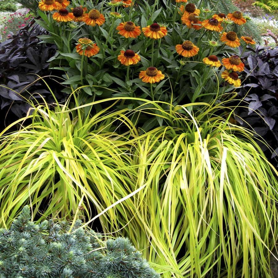 Use 'Everillo' as a bright accent in mixed containers, as a naturalizing underplanting to add golden tones to the woodland garden, or as a gorgeous groundcover to prevent erosion in areas where storm water flows through. In mass plantings it will work to prevent erosion, and you will be rewarded with a spectacle every time the wind blows through the foliage, sending the golden blades bobbing and swaying as if to some jaunty tune.