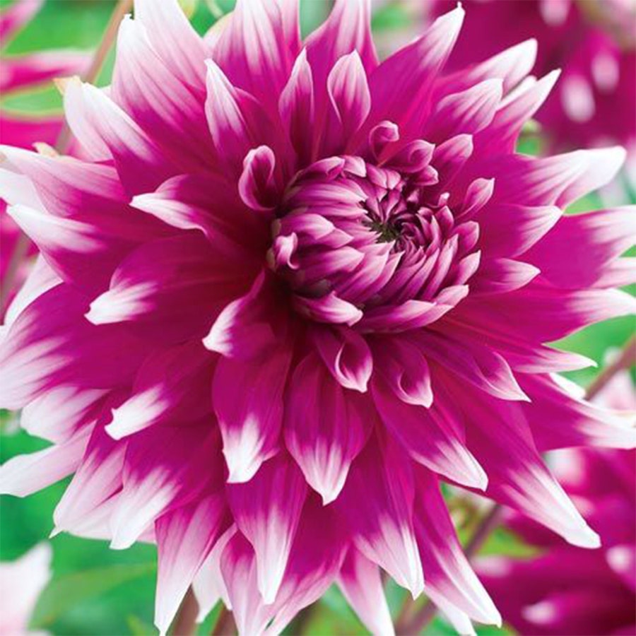 Every garden needs a reliable cut flower that produces all season and lasts in the vase. Dahlia 'England's Glory' is all that and more! This bulb sets huge blooms in a shade of deep purple with touches of white at the tips of each petal.