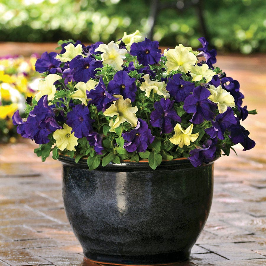 Blueberry Lime Jam pairs the chic night-and-day combo of 2 premier names in petunias: Dreams Midnight and Sophistica Lime Green. This perfect pair is part of the exciting Fuseables series that combines compatible varieties for natural-looking balanced blends, creating season-long color, perfect for hanging baskets and patio containers.