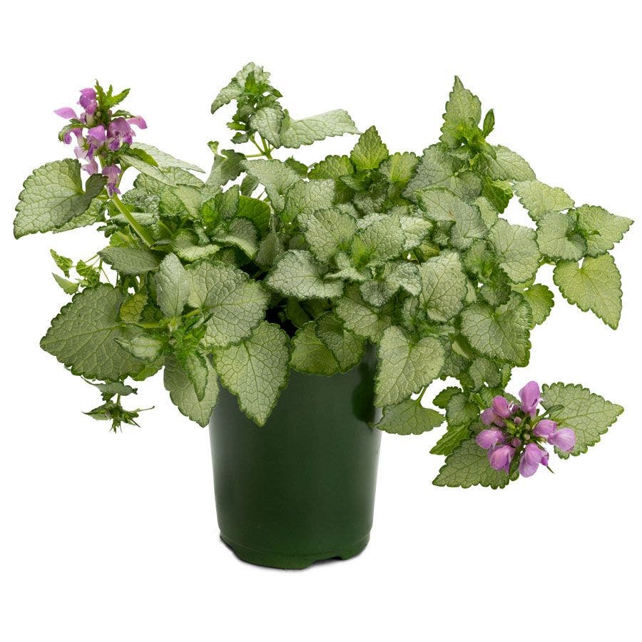 A hardworking perennial groundcover that practically glows in the shade, Lamium 'Orchid Frost Gold' forms a spreading, weed-smothering mat that successfully blankets the shady areas where lawn grasses fail, and that would otherwise stay bare. The silver foliage with golden-green base tones and dark edging is evergreen in mild climates and deciduous in colder climates.