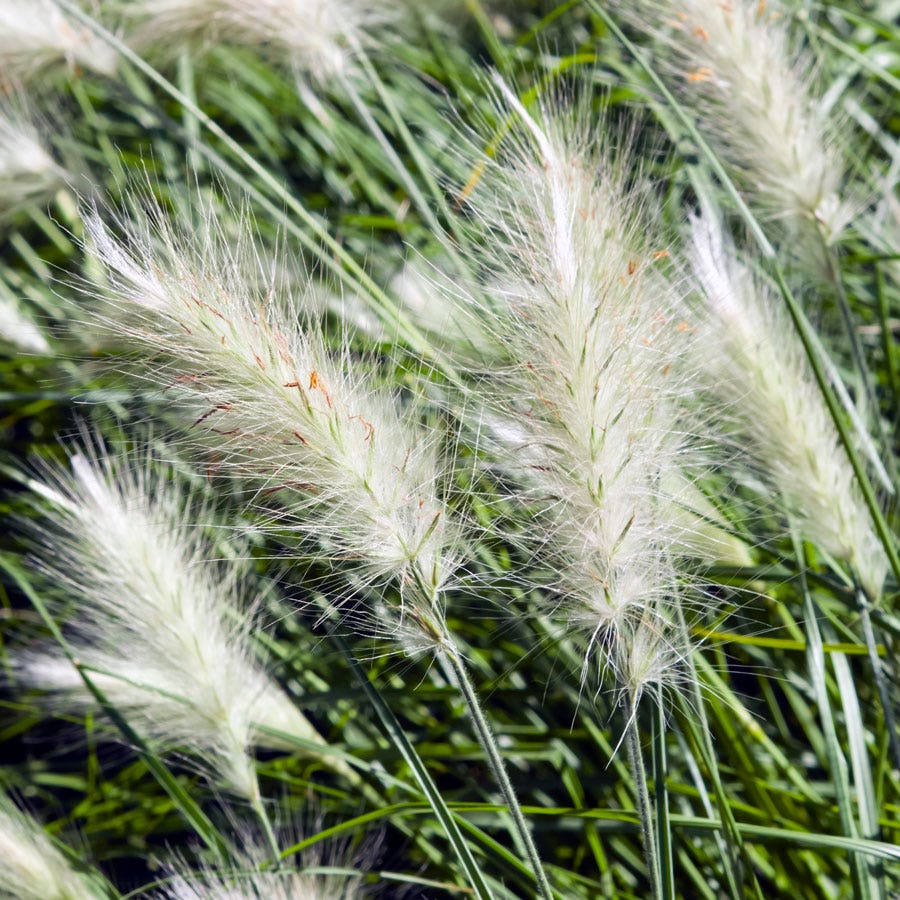 Fluffy Feathertop Grass is a tender perennial grass in Zones 9 and 10 and is typically grown as an annual in cooler regions. This ornamental grass is favored for the fine texture, motion, and grace it offers the garden during the growing season as well as its sculptural beauty in winter, especially when transformed by a fresh coat of snow. Fluffy Feathertop Grass produces an airy tufted mound of narrow, linear green leaves and blooms in fluffy white spikelets from midsummer into fall. Borne atop elegant slender stems, the plumes tint purple with age and make lovely additions to cut flower arrangements, fresh and dried.