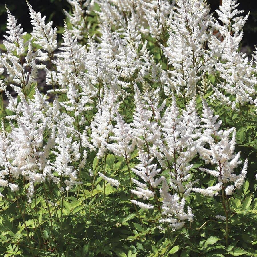 A popular choice for shady areas, 'White Gloria' is really quite glorious in early summer with its substantial, pyramidal-shaped, white plumes sitting atop glossy dark green foliage. The plumes make excellent fresh cut flowers or everlasting arrangements, and the plume seed heads can be left on for winter interest.