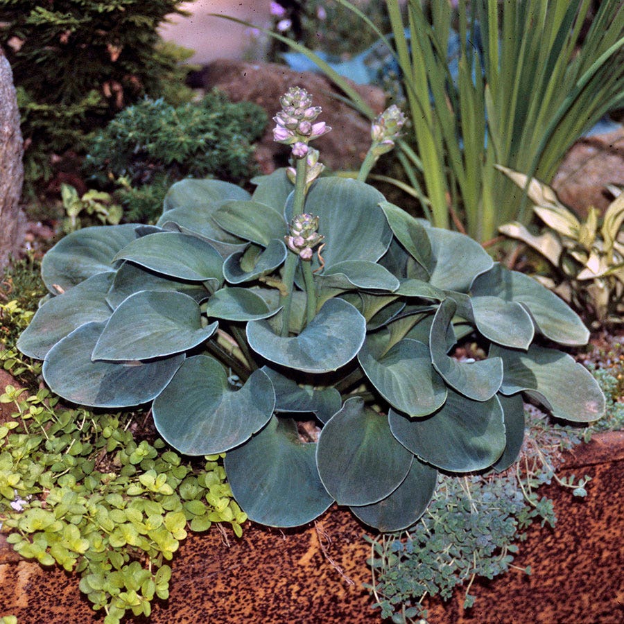 A sport of H. Blue Cadet, Blue Mouse Ears sets new foliage all season, often with a hint of gold at the base of the leaf. Use this compact plant in containers of all sorts, as edging, in the front of the shade border, and as an accent among green- and yellow-leafed plants. It tolerates partial to full shade, and prefers to avoid direct sun. Zones 3-8.