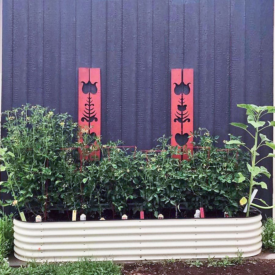 Vego Garden panels are made of highly corrosion-resistant steel substrate, hot-dip-coated in a revolutionary specialized layer of zinc, aluminum, and magnesium called Aluzinc, which forms a durable, long-lasting protective film that makes the panels twice as hard as regular galvanized steel and 5x harder than wood or plastic. In addition, Aluzinc makes the panels exceptionally impervious to rust and corrosion under all environmental conditions, including high heat, humidity, alkaline, acidic, and ammonia environments, giving these panels a life expectancy of 20+ years. The 100% recyclable and non-toxic, eco-friendly panels are also covered in USDA certified, food-grade agriculture paint. They leach no metals, chemicals, or toxins into soils.