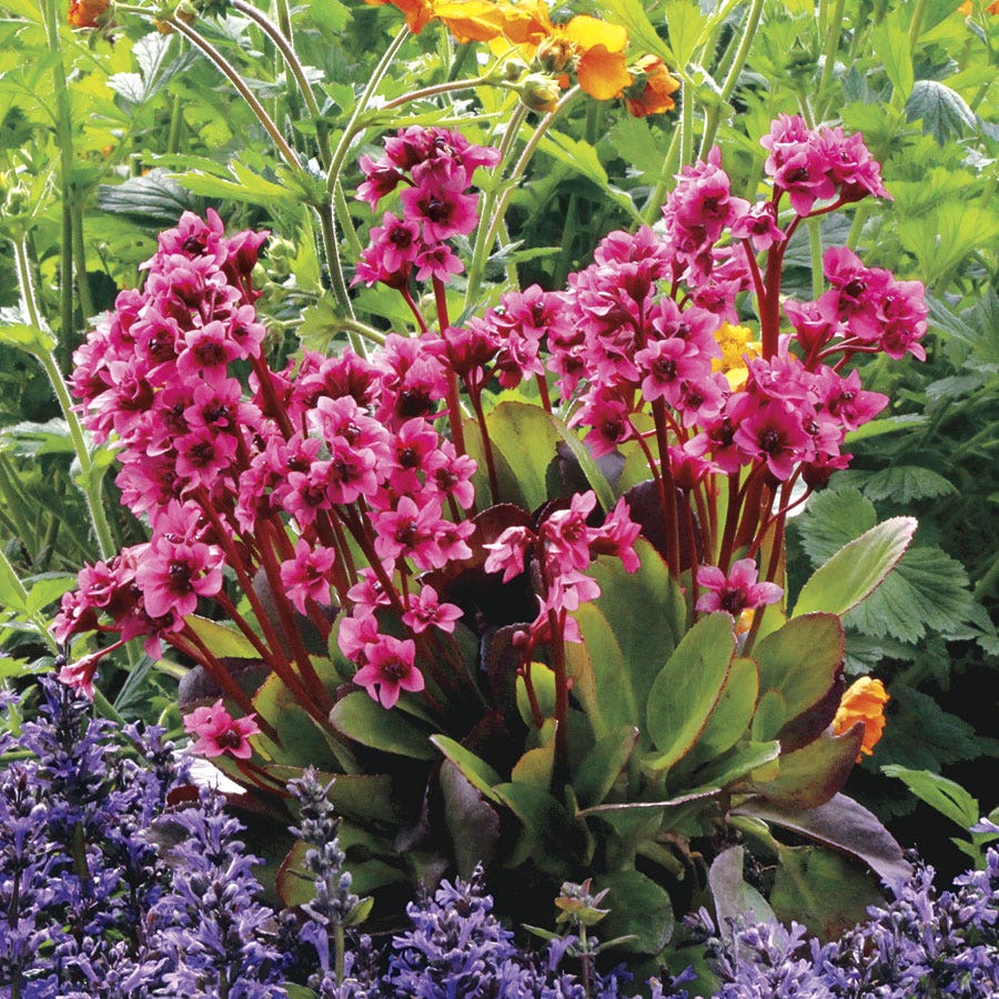 The pink blooms appear in March, and last until the heat of summer arrives. It enjoys well-drained soil, and is tolerant of drought, so don't give this little guy too much to drink. 'Flirt' will attract Hummingbirds to your spring garden to fill it with even more color and life. However, deer avoid it so you don't have to worry about pests ruining the pretty pink blooms. Let yourself fall for the charms of Bergenia 'Flirt'!