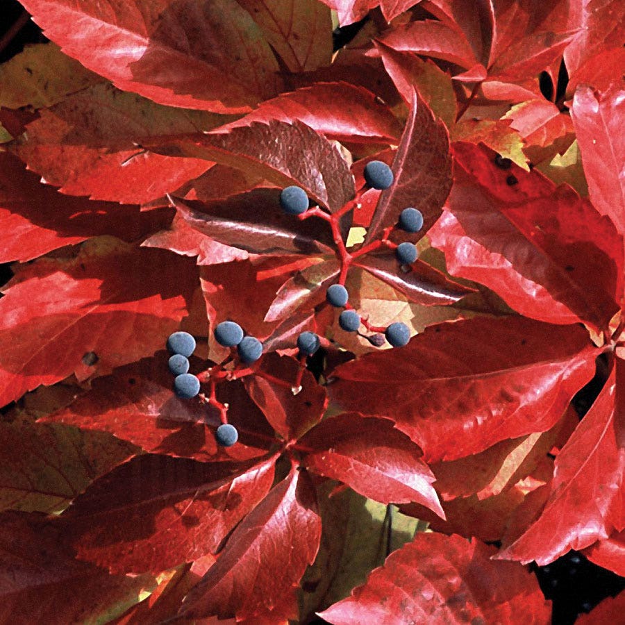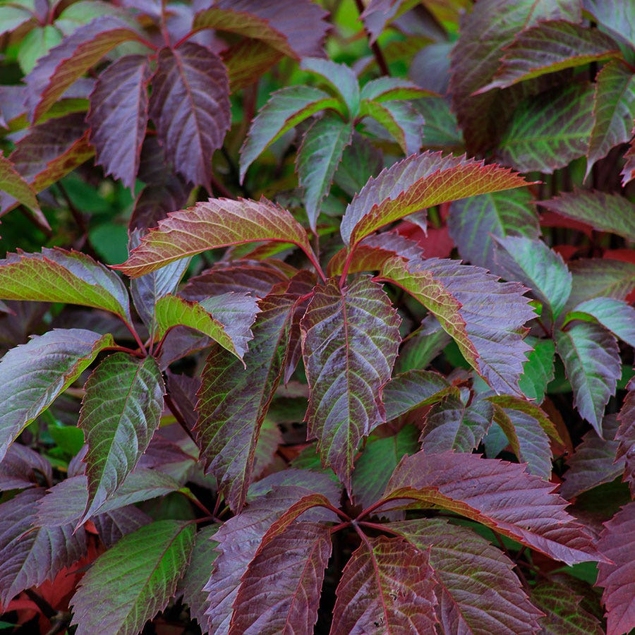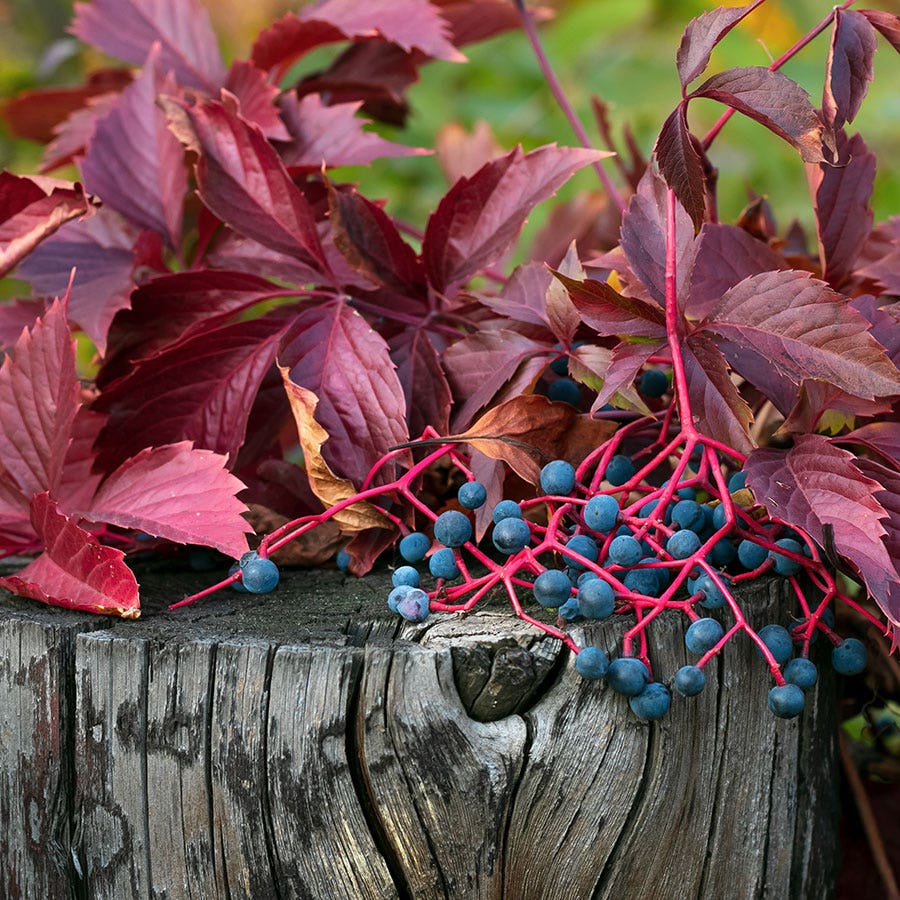 The color of this vine is everchanging: the purplish leaves of spring present dull green in summer and turn varying shades of purple and crimson by fall. From late spring through summer, small white flowers nestle among the foliage; and in the fall, they turn into blue-black berries that attract birds looking for a late-season snack.