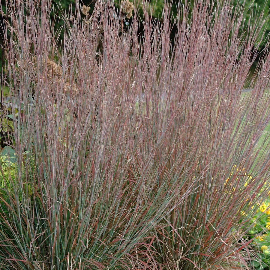 This little bluestem is remarkable for its very tight, upright habit, its thick blades, great drought resistance, and lovely colors: red tips transition through purple down to blue-green!
