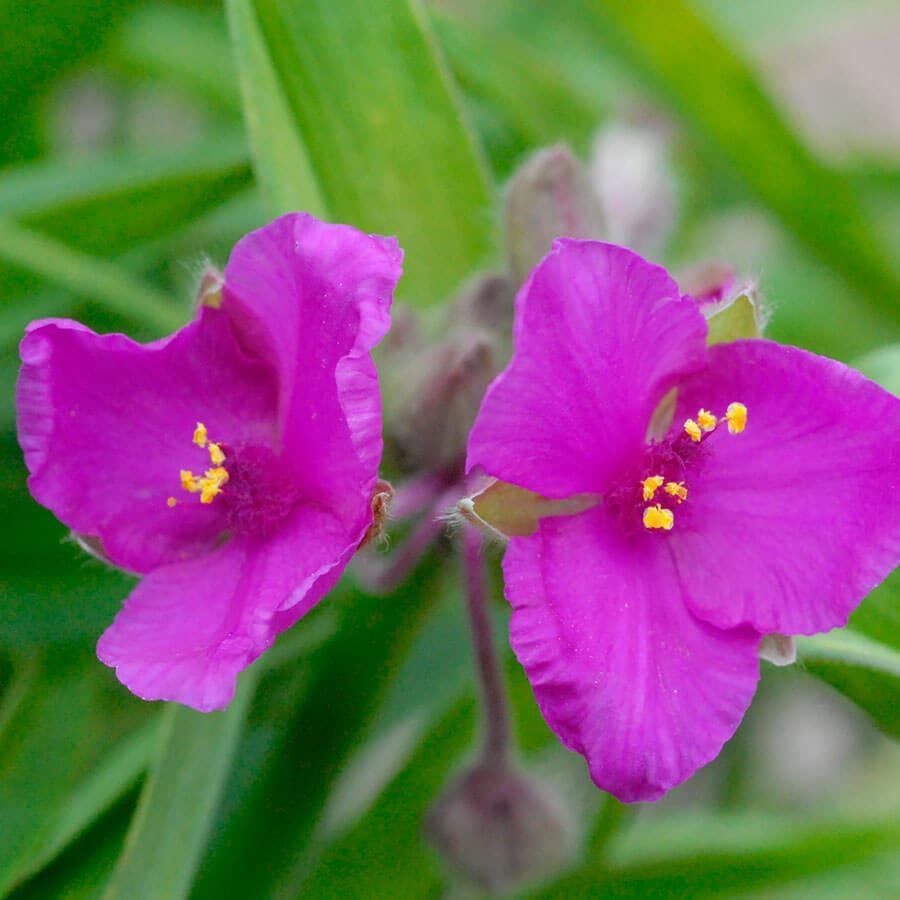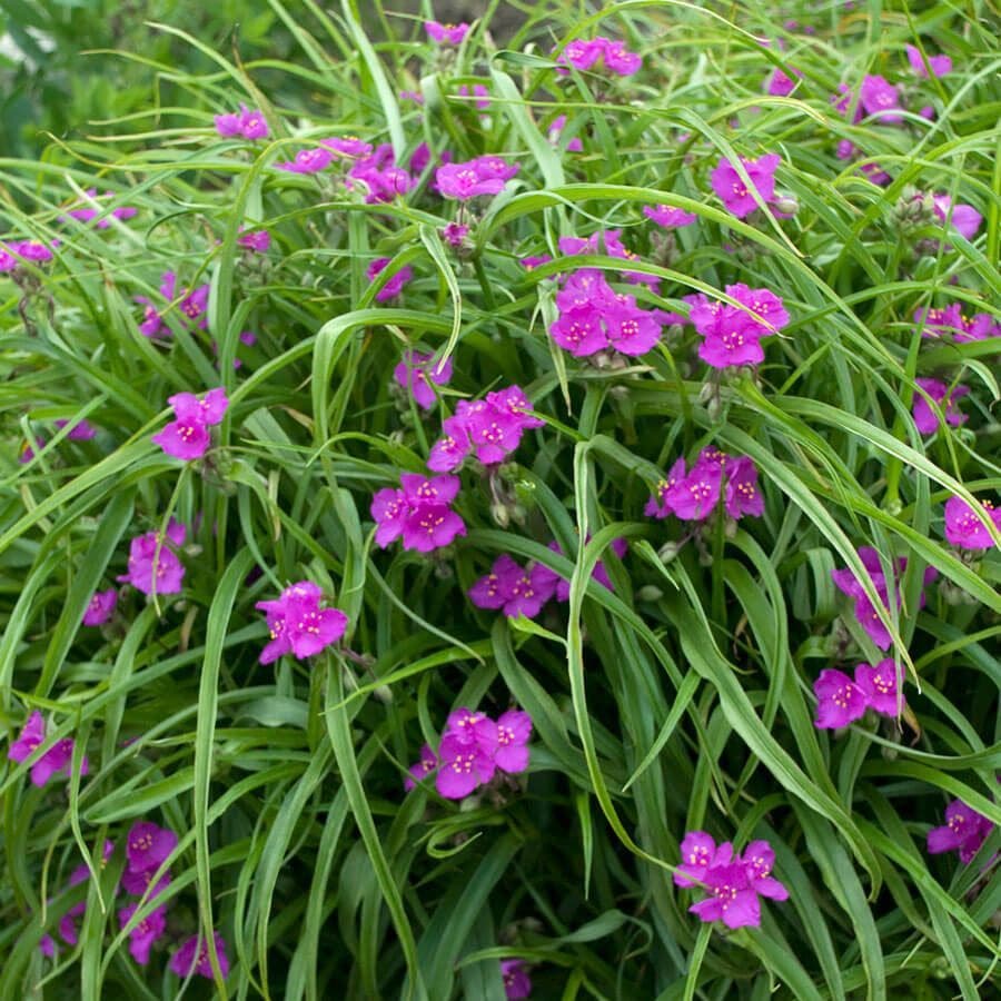 A native North American wildflower, this spiderwort has a long bloom season. The 1- to 2-inch, three-petaled, rose-purple blooms, accented with yellow stamens, are borne in clusters on stiff stems. Although the flowers appear for only one day, each cluster contains numerous buds that open in succession and heavily dot the rounded mound of arching, iris-like leaves for up to 8 weeks, keeping the butterflies and bees coming.