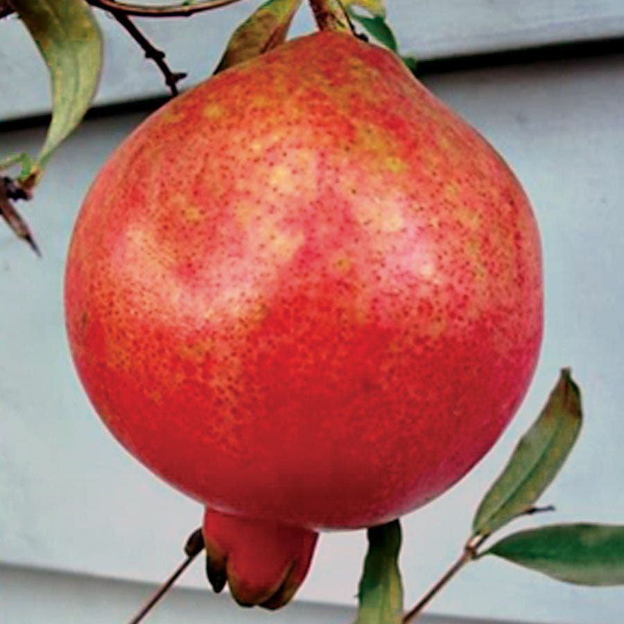 Punica 'Parfianka' Pomegranate is a favored selection from a collection of over 1000 Pomegranate varieties. Identified with the highest praise and even named the best tasting pomegranate during multiple taste tests, this upright, vigorous variety bears fruit heavily, even at a young age. Characterized by its large red fruits that open to reveal the juicy dark red edible seeds. They are sweet with just a hint of acidity and are a perfect, healthy snack or topping for a salad.