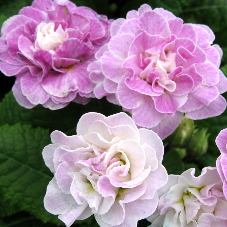 Primula is also known as primrose and they are an absolute delight for your garden. The sizable double blossoms open white and then take on a joyful lilac pink blush color. They bloom profusely throughout the spring season atop the compact, bright green foliage. The sterile flowers result in a plant that is incredibly long blooming. They prefer full sun or part shade consistent watering. They look incredible in your shady beds and a borders and are quite hardy in the landscape. You can also plant a few in combination containers and windowsill pots if you're short on space or your just want to view these stunning blooms up close. Where ever you plant 'Pink Ice' it will charm you and your guests.