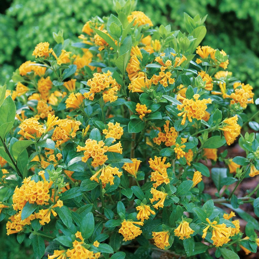 A Proven Winners® ColorChoice® Flowering Shrubs variety, Cestrum Juiced™ Orange Jessamine is a compact evergreen (above Zone 7) shrub offering year-round interest, blooming from spring through summer, often to first frost. Citrus hued, fragrant clusters of slender, tubular flowers bloom in abundance and sustain bees, butterflies, and hummingbirds. This tropical, South American native shrub has a superior bushy habit of dark, glossy foliage.