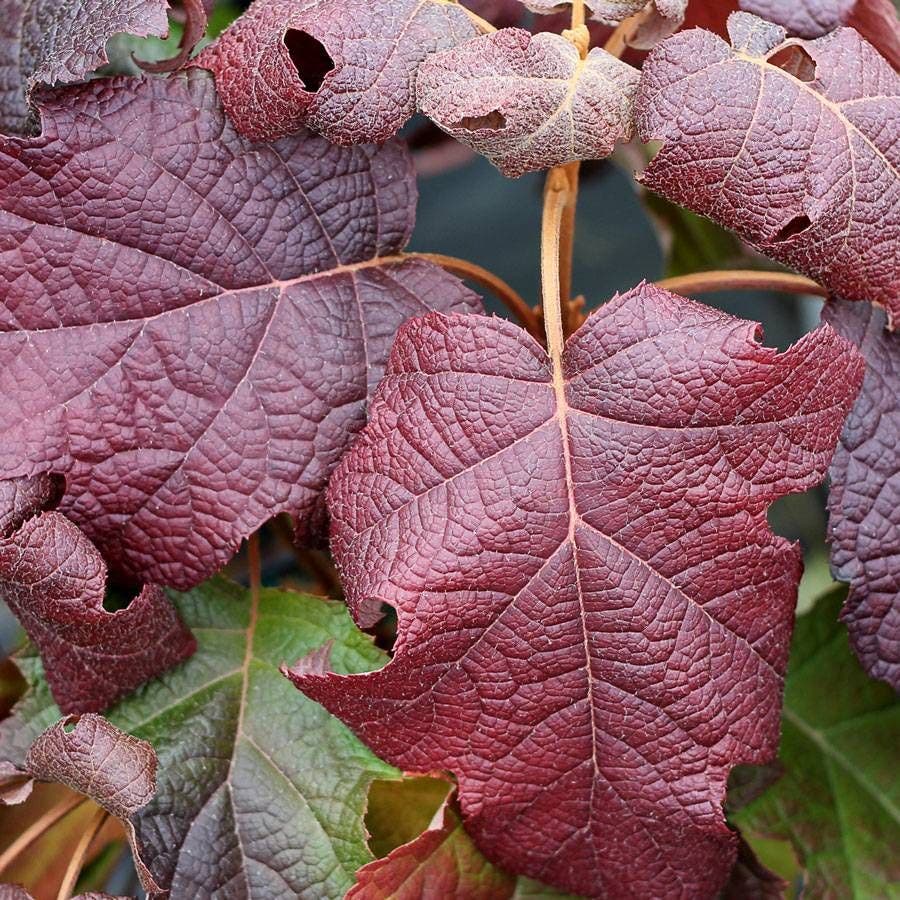 A remarkable garden specimen, Gatsby Moon® Oakleaf Hydrangea sets massive foliage and blooms that are both worthy of inspection. The huge leaves make this shrub stand out all year long, especially when they turn a deep red in the fall. The blooms set ample cones of double white florets, creating a rich and varied texture. These blooms open a vibrant white and slowly take on lime tinges as they mature. And each bloom has plenty of time to mature, as Gatsby Moon® blooms for months on end, keeping the flowers coming all summer long. Wonderfully weather resistant, nothing will stop these blooms from putting on their show.
