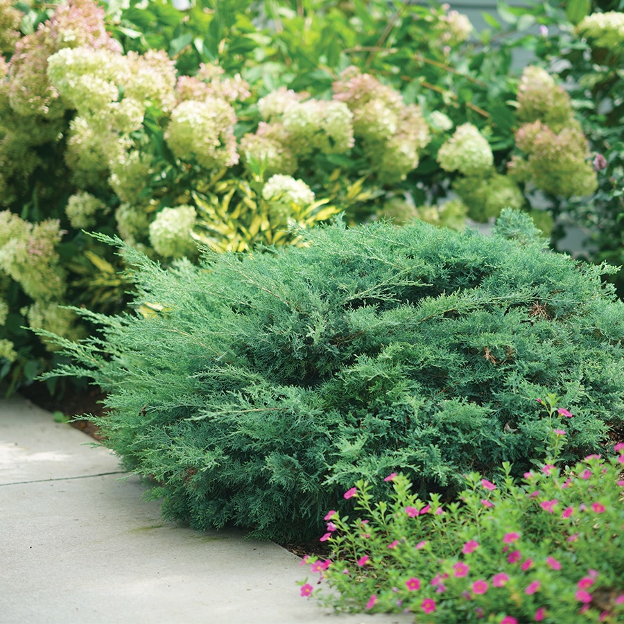 A Proven Winners® ColorChoice® Flowering Shrubs variety, Juniperus Montana Moss® Juniper is an evergreen ground cover offering year-round interest. Soft to the touch, moss-like foliage has an appealing texture and a refreshing blue-green tone. A tough, durable, low-growing plant, Montana Moss juniper makes a nice specimen but is shown to best effect massed or grouped in beds or foundation plantings.
