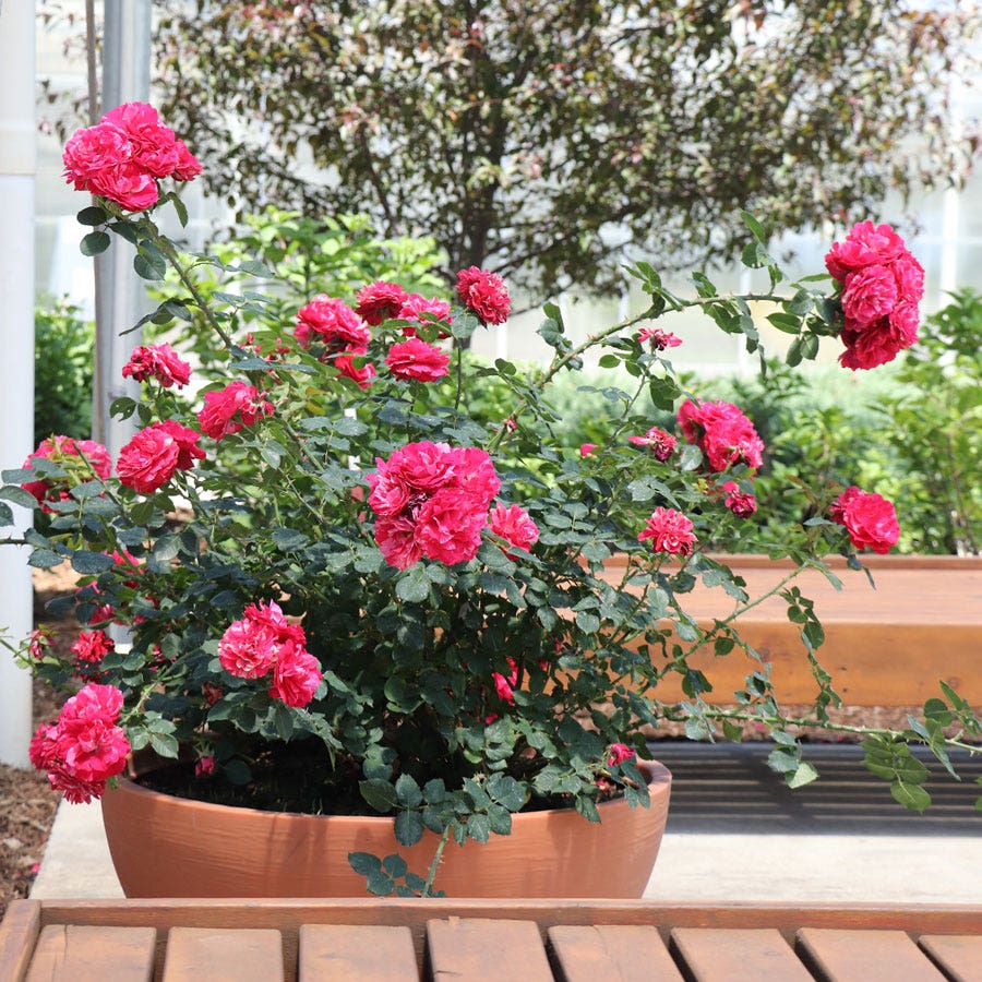 This Rosa hybrid, commonly known as a landscape rose, features an upright habit and excellent vigor. It is perfect as a standalone specimen in containers or small garden beds and borders. For an eye-catching display, consider mass planting, which is particularly effective for foundation plantings.