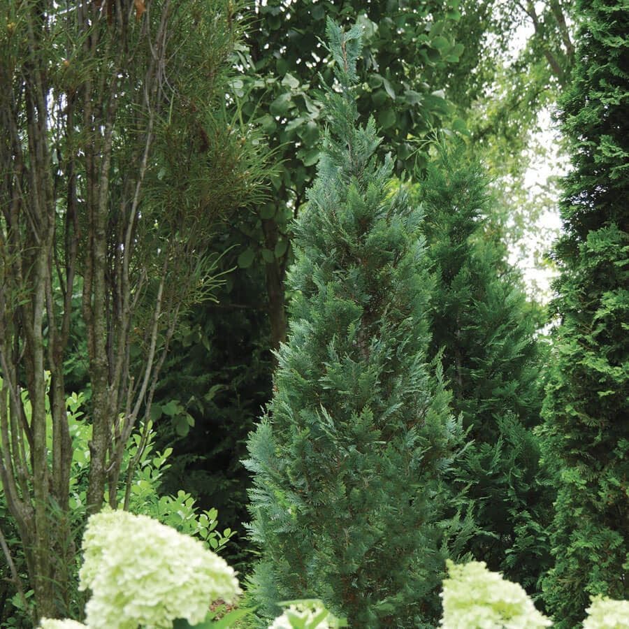 A native North American species from southern Oregon to northern California, Chamaecyparis Pinpoint® Blue evergreen conifer has a narrow, upright, columnar habit; and although Chamaecyparis Pinpoint® Blue takes up very little space, it adds nice structure, lush color, and feathery texture to the landscape year-round.