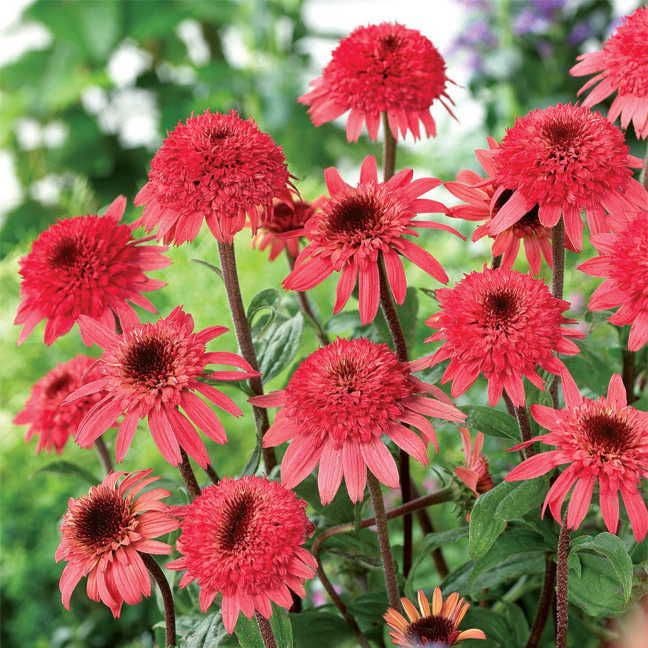 There has never been a coneflower more fun to grow than 'Raspberry Truffle', with its giant 4-inch blooms that begin life as peachy-pink daisies and then grow a pompon of deeper raspberry. Arising plentifully on compact plants, they are a glorious addition to the sunny border or the cutting garden.