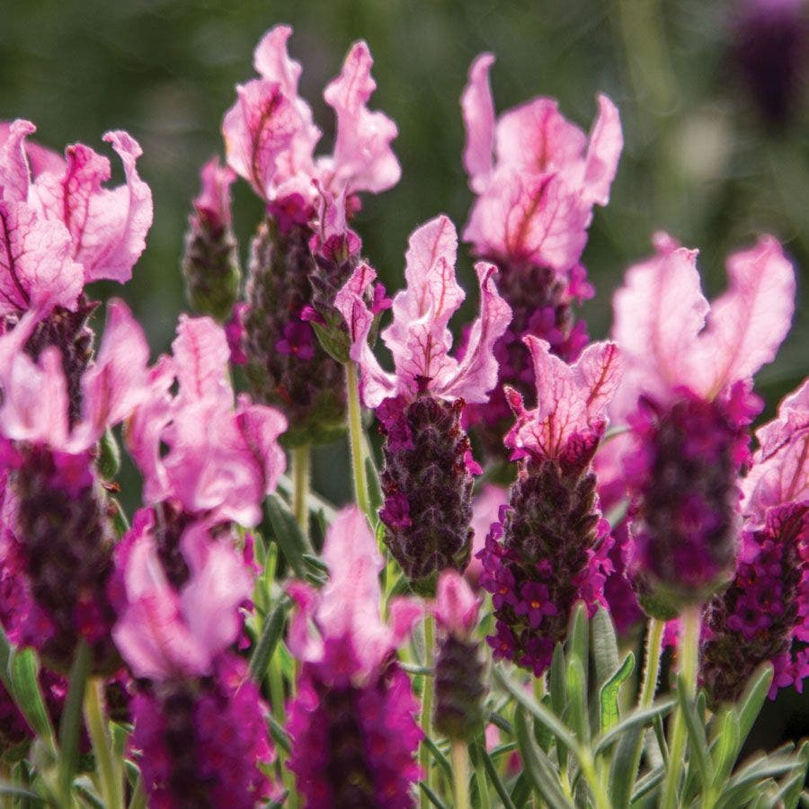A Lavandula stoechas, commonly called butterfly lavender, French lavender, or Spanish lavender, New Madrid Rose is native to Spain, Portugal, and Italy. It is a compact plant with a tight, upright, mounding habit and medium growth rate. This lavender is perfect for the bed or border front and makes an excellent specimen or "thriller" in a container garden. It is especially well-suited to waterwise gardens.