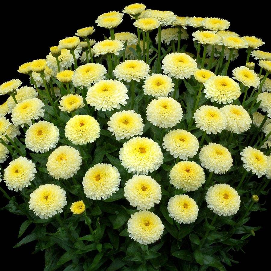 Turning from soft yellow to creamy white like a harvest moon slowly rising in the night sky, 'Luna' Shasta Daisy is an amazing Shasta for your sunny border and best container. These big double pompons are a different mix of yellow, cream, and white almost every day, and you'll love admiring them over the many weeks of their long season.