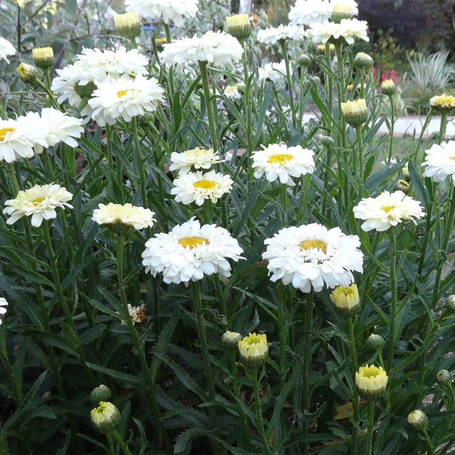 The bloom season begins in late spring to early summer, continues through summer, and even trickles into autumn if you deadhead the flowers to encourage new blooms. That's an incredible span for any plant, and much longer than most Shastas! Butterflies dance upon Real Dream throughout it all, adding further bright color to the display.