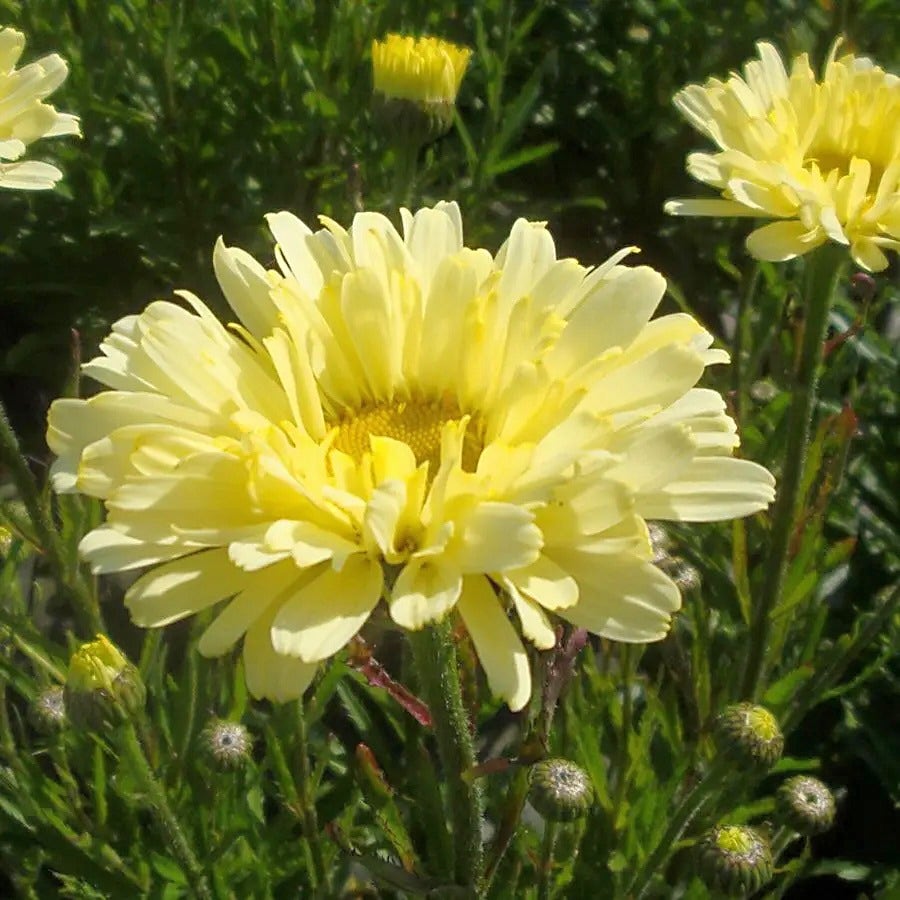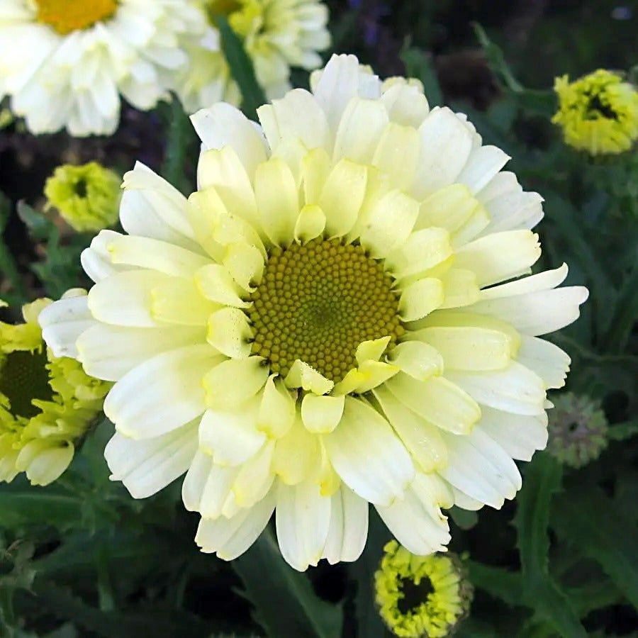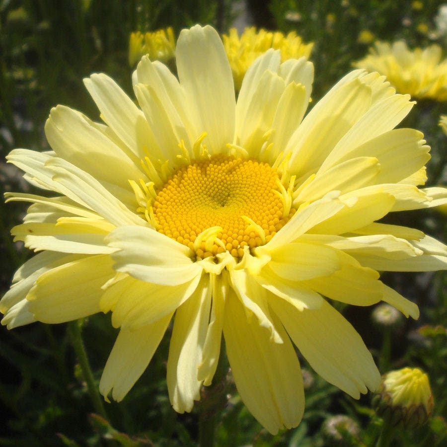 Real Dream is a dwarf Shasta Daisy with classic yellow blooms and an exceptionally healthy body. The semi-double, delicately ruffled petals emerge from a golden center a lime green and fade to a creamy white over time. Real Dream is a charming addition to any bed, border or container. This variety is super-floriferous and long-blooming. The flowers can last 2 weeks or more in the vase, offering you a long season of beautiful arrangements!