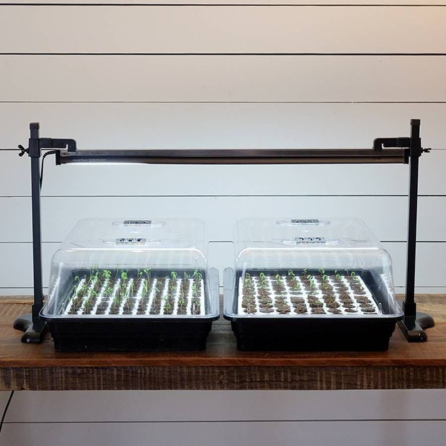 We love this universal light stand, and so will you. It's simple, lightweight, very durable, and completely adjustable. It puts light just where you need it, so your seedlings and plants grow their best. It's easy to use and endlessly versatile. We think you'll get a lifetime of hard wear out of it, and we highly recommend it for starting seeds indoors, growing on seedlings before the season, and overwintering tropicals, tenders, and houseplants.
