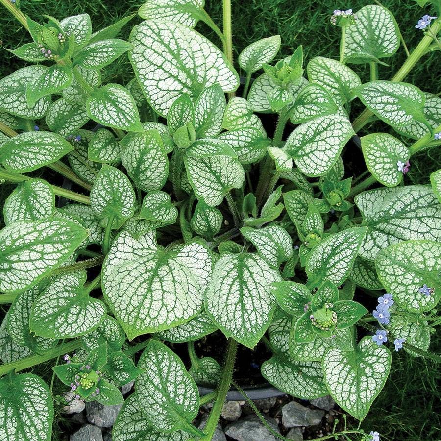 This Heartleaf Brunnera 'Sea Heart' begins spring with fresh leaves of olive green overlaid with a bright silvery pattern that is downright dreamy. Many-layered and dense, this little perennial has a much larger impact than you would expect from its size, thanks to the intricate detailing on every leaf.