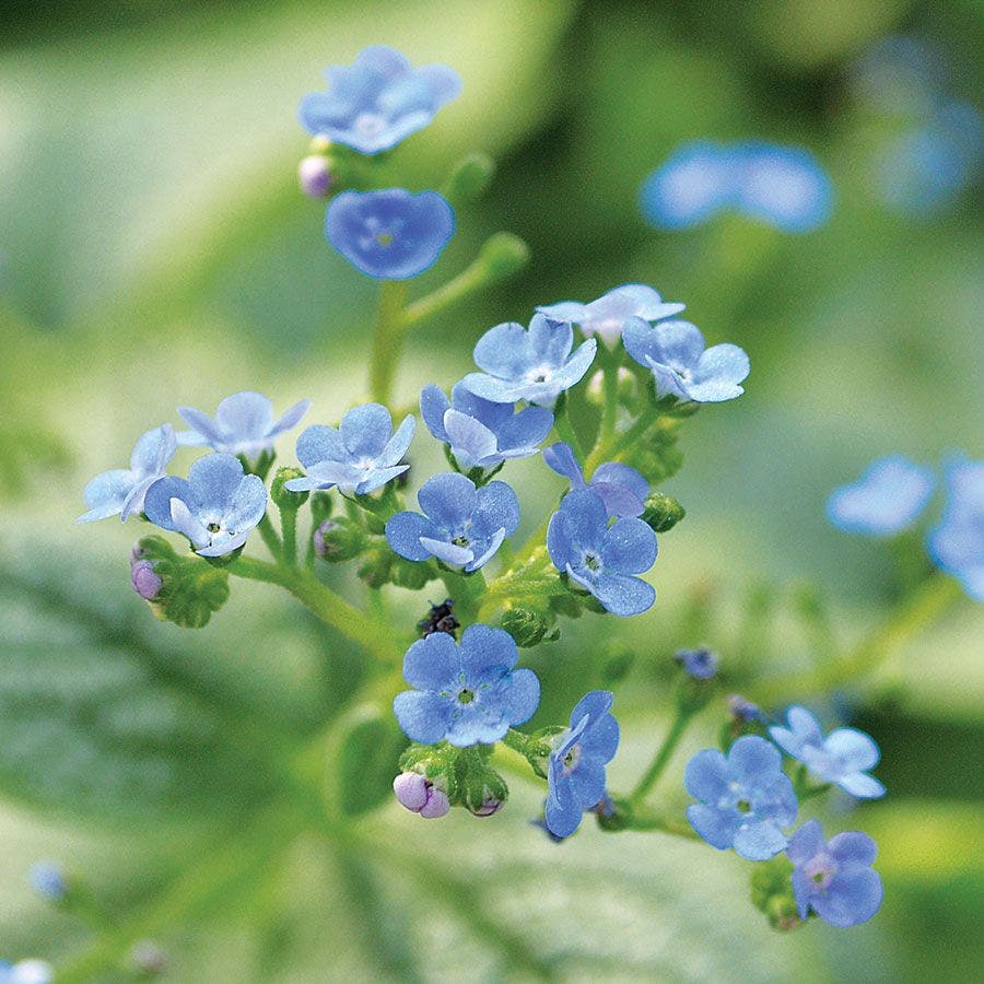 The unprecedented color show of Brunnera 'Sea Heart' offers up white, blue, and lavender-purple tones in abundance! A delight for shady spots in the garden or on the patio, this breakthrough Siberian Bugloss sets sprays of little florets that open white and blue, then gradually mature to a more lavender color. Once the season is underway, all 3 tones are present at once, creating a rich color show over the already-showy foliage.