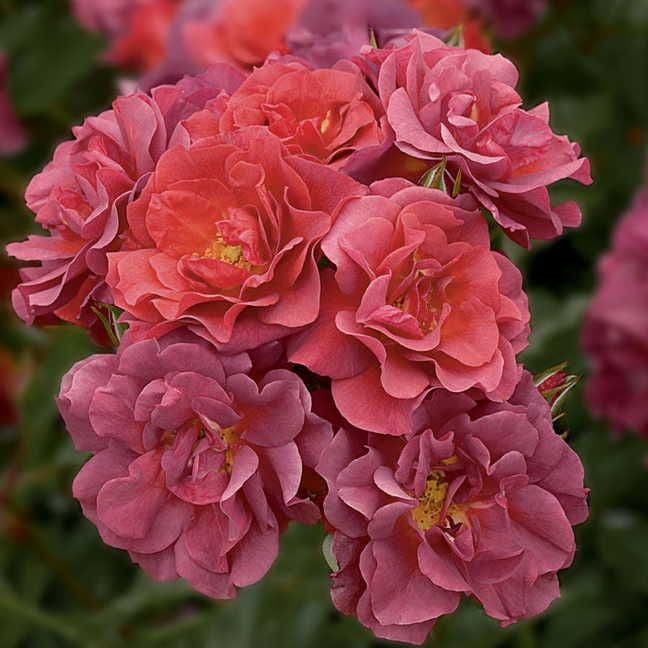 Impossible to categorize as any single flower color, this wildly bright 2009 All-America Rose Selections Winner offers giant clusters of blooms containing every shade of red, orange, magenta, purple, smoke, and more. Each flower is unique, and a fully blooming shrub is a conflagration of festive colors, enhanced by a fresh-cut apple fragrance you will love.