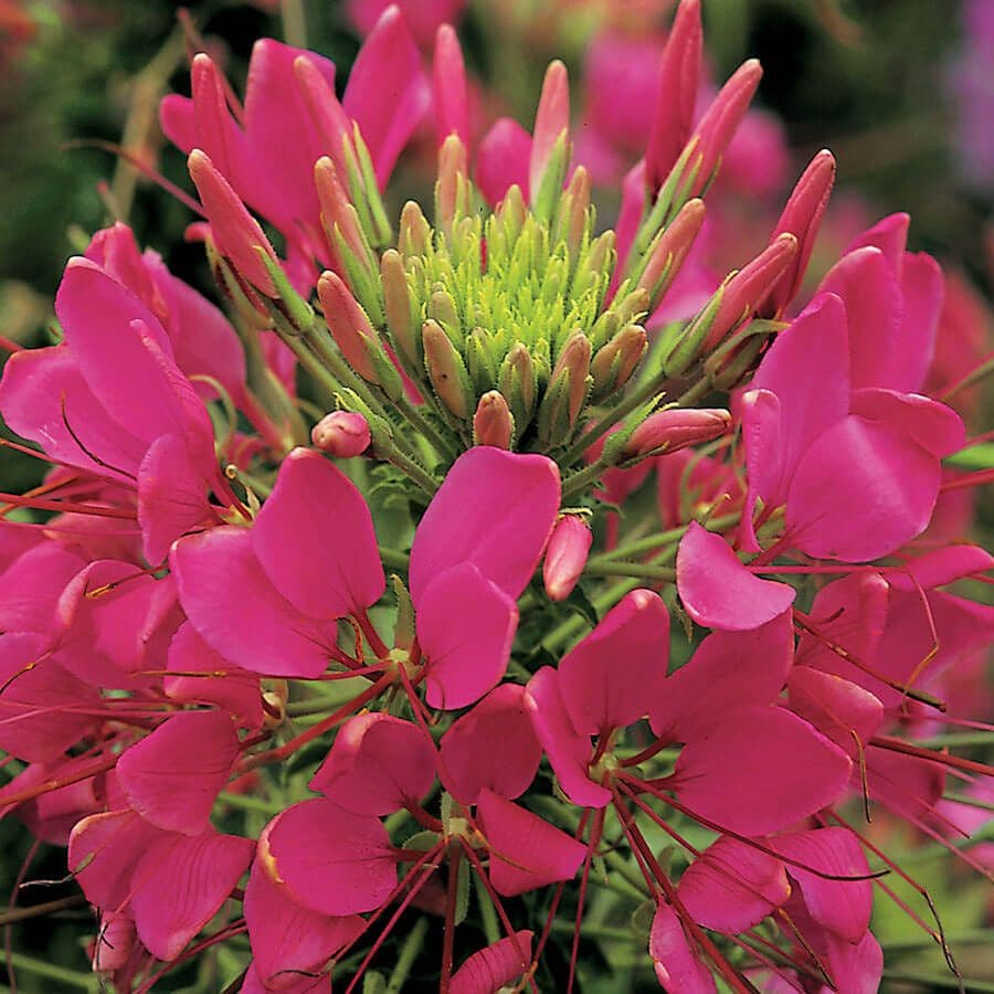 This Sparkler Rose Spider Flower plant begins flowering in early summer (as soon as the hot weather arrives) and doesn't quit until the temperature drops in fall. A sun-lover, Sparkler Rose Spider Flower is at home in the baking-hot border, bed, or patio, and once established is quite tolerant of dry conditions. (Water it well during growth, though, to get it off to a good start.) Sparkler Rose Spider Flower rapidly reaches 3 to 4 feet tall and about a foot wide, with a bushy fullness that adds weight to its presence as an accent, low hedge, poolside planting, or mid-border standout.