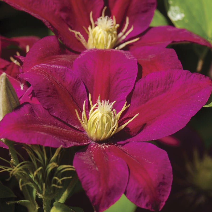 Cold Hardy and easy to grow, Clematis 'Ernest Markham' prefers full sun to part shade and fertile, moist, well-drained alkaline soil. But it tolerates a wide variety of soils, including chalk, clay, and loams with an acid or alkaline pH. Good site selection is key. So, remember the adage for success with clematis when planting: feet in the shade, head in the sun. The plant should be placed where the leaves get plenty of sunshine (approx. 6 hours), but the roots are shaded and kept cool, either by low-growing, evergreen shrubs or by heavy mulch. Good drainage is important, and extremely wet locations should be avoided. Protect plants from strong winds but allow good air circulation. Deer resistant.