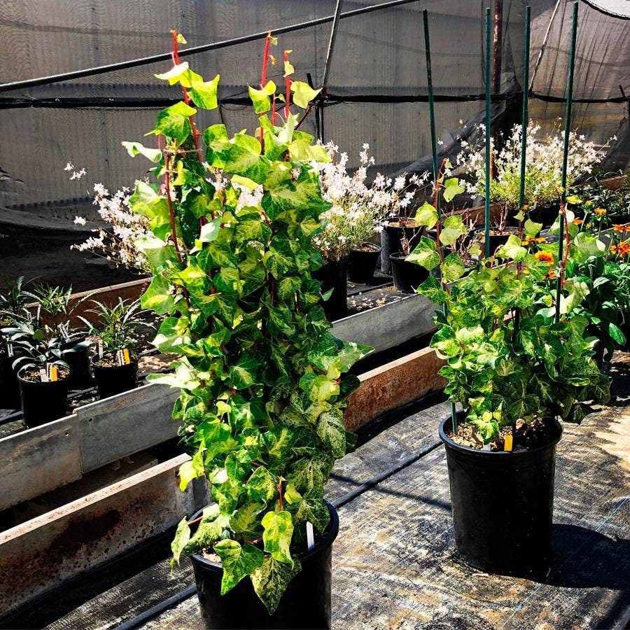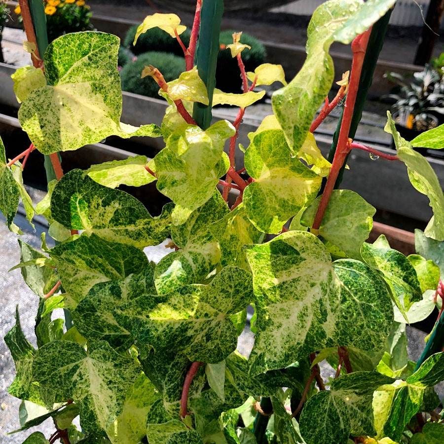 Hedera 'Tropical Blizzard', a large-leaved Algerian ivy, is an evergreen perennial offering year-round interest. The unique leaves are highly variegated with gold to pure white marbling and flecking with varying shades of green in between. But the pink and red stems may just steal the show.