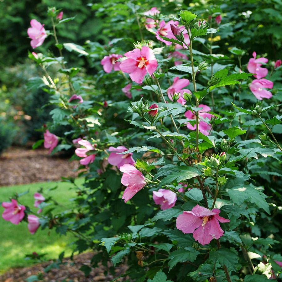 Tough and remarkably easy to grow, rose of Sharon grows best in sunny to partly shady locations with fertile, organically rich, moderately moist, well-draining soil with a slightly acidic to neutral pH, but it tolerates poor soils and some drought and is pH adaptable. It loves hot summers and blooms best in 6 to 8 hours of full sun. Good air circulation is important for disease prevention and for best overall performance. Rose of Sharon is fairly pest and disease free; deer resistant; and heat, humidity (with good air circulation), and air pollution tolerant. The plant can over winter in temperatures as cold as -20°F with heavy mulch covering the root ball to insulate it.
