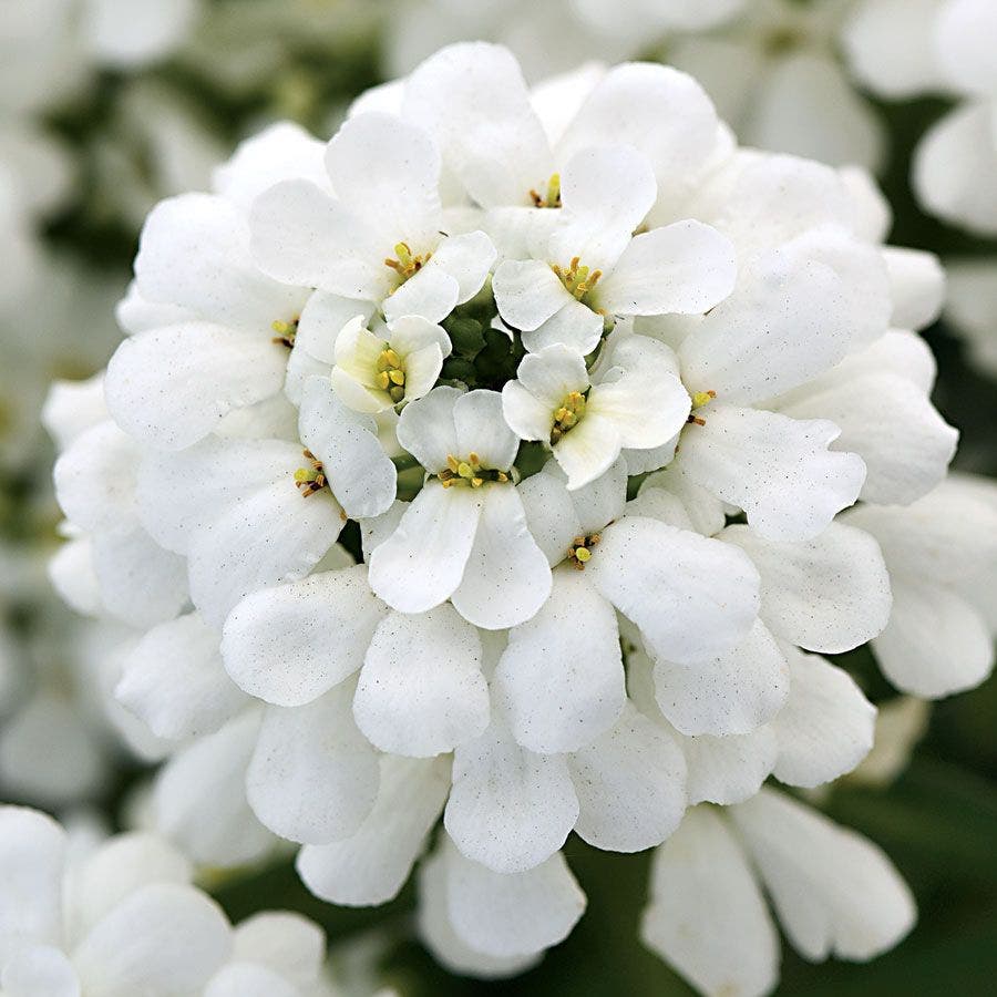 Snow is rarely a welcome sight in the spring garden, but Iberis Snowsation, a candytuft, is a beautiful exception to that rule. Its perfectly pale blooms are fairly large despite its petite stature. The glowing white looks even more brilliant against Iberis Snowsation's dark and dapper evergreen foliage which keeps to a clean, mounded habit. Adding to Iberis Snowsation's list of charms, this sun-loving perennial is also quite frost tolerant and presents excellent branching.