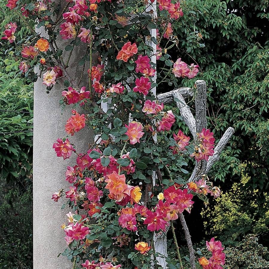 Introduced in 1964, Joseph's Coat has stood the test of time beautifully. No other rose in the world is like it, with its bright primary colors and free-flowering ability. Joseph's Coat Climbing Rose makes a fine choice for threading through a fence, training up an arbor or trellis, or using as a formal pillar rose. Bred from Buccaneer x Circus, Joseph's Coat is reliably vigorous, season after season.